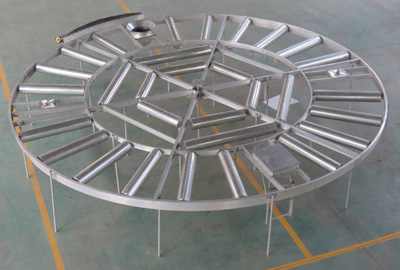 組裝式內(nèi)浮盤采用了獨(dú)特的浮子布置形式。其中,在外圈、沿周邊密封帶附近,均勻設(shè)置多個(gè)浮子,使密封帶受力均勻,用于克服浮盤在運(yùn)行過(guò)程中產(chǎn)生的密封帶與罐壁之間產(chǎn)生的摩擦力,同時(shí)也增強(qiáng)了密封帶附近的結(jié)構(gòu)強(qiáng)度,從而保證了浮盤密封帶的運(yùn)行安全,不出現(xiàn)卡盤現(xiàn)象。