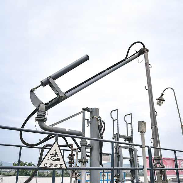 火車鶴管分大鶴管和小鶴管,小鶴管大體上由固定立管、水平管、垂直管、旋轉(zhuǎn)接頭和力矩平衡裝置,大鶴管需配有鶴管升降、移動機械裝置和機車牽引裝置。