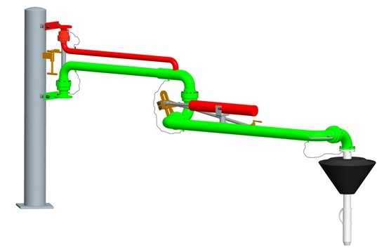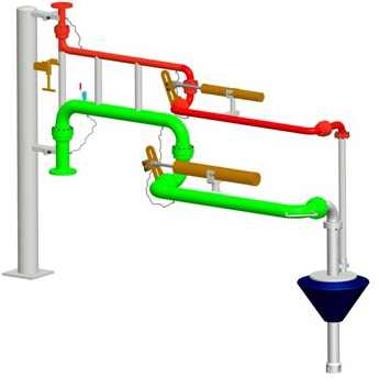 )是由旋轉(zhuǎn)靈活、密封性能好的旋轉(zhuǎn)接頭與管道等部件串聯(lián)起來,用于槽車與儲運管線間的流體物料傳輸。按照裝卸形式和介質(zhì)要求分為:頂部裝卸(單/雙)臂和底部裝卸(單/雙)臂。
