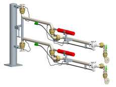 下裝鶴管 適用于成品油、化工介質(zhì)等裝車(chē),由旋轉(zhuǎn)接臂、軟管及進(jìn)口干式脫離接頭(干式閥)等組成。 |