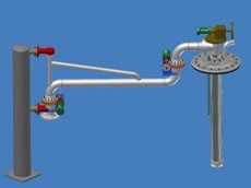 AL1402型(頂部裝車(chē)鶴管) 使用場(chǎng)合:罐車(chē)頂部敞口裝車(chē)作業(yè) 適用介質(zhì):原油、成品油、化工介質(zhì)等 管道材質(zhì):碳鋼/不銹鋼 |